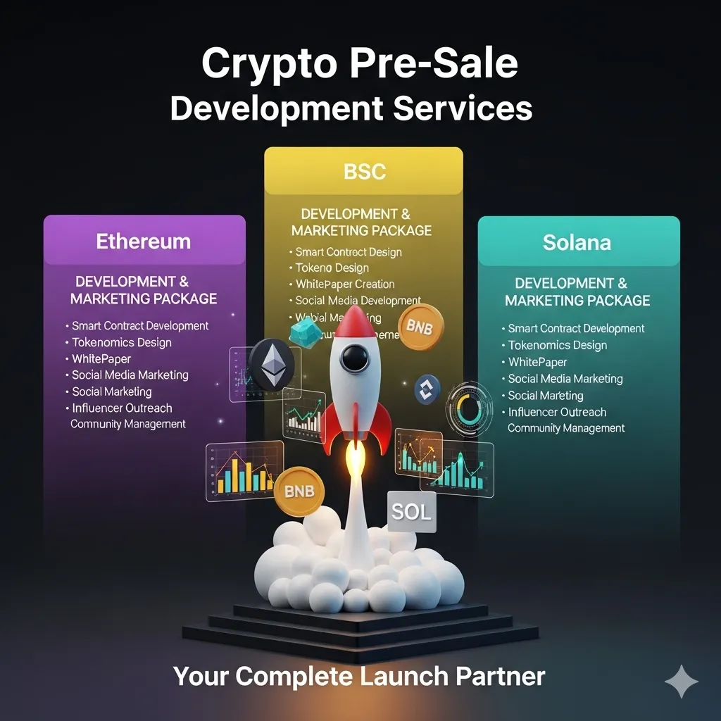 Our pre-sale concierge service is a premium, all-in-one solution for your project launch. It includes personalized support for every critical step: creating your token, developing the pre-sale smart contract, designing and deploying your website, and guiding you on marketing and community-building strategies. We provide a roadmap to success, ensuring a smooth and professional launch from start to finish.